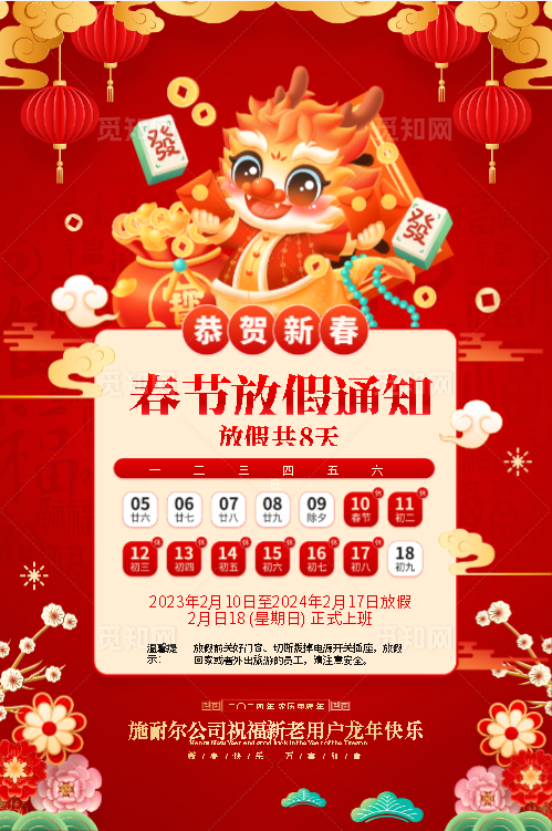 施耐爾2024龍年放假通知